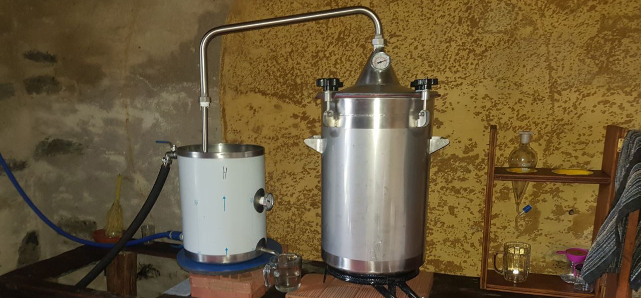 El proceso de destilación de la planta se realiza introduciendo en un alambique, por separado, la parte de la planta de la que se obtiene el aceite esencial y agua. El fuego calienta el agua y el vapor atraviesa la planta arrastrando los aceites esenciales. Ese vapor choca con frío y el resultado es un agua destilada con el aceite esencial.
